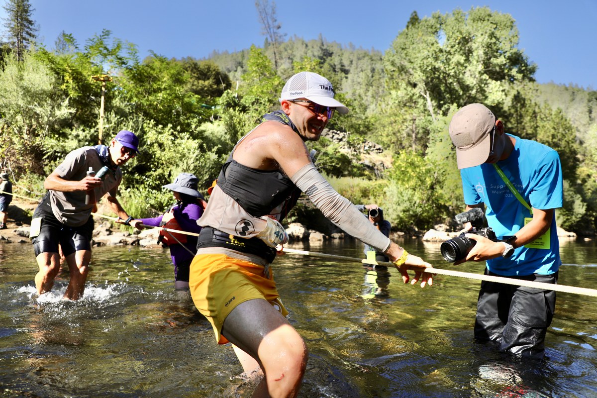 Ryan Montgomery crossing the American River on his way to a seventh-place finish. Photo: iRunFar/Bryon Powell