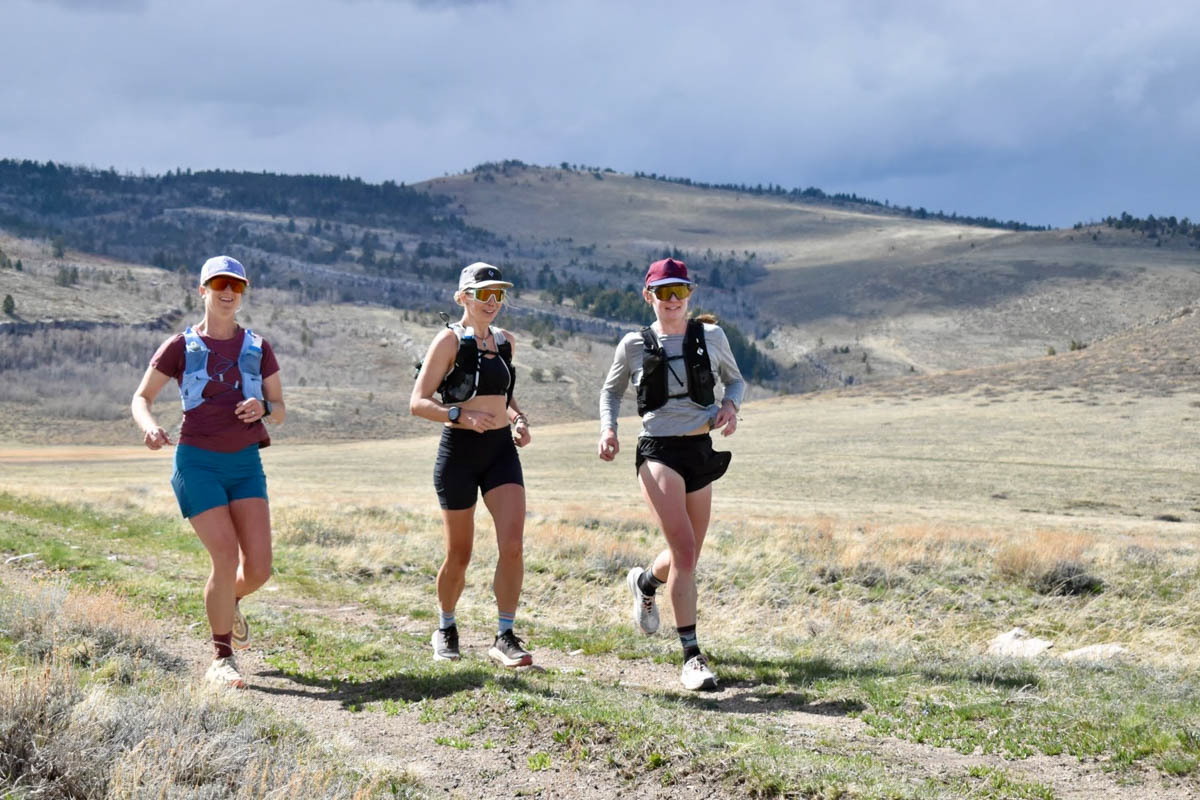 Jenny Joyes, Kelly Halpin, and Amy King wrapping up a point-to-point 30-mile spring fun run. Photo: Gabe Joyes