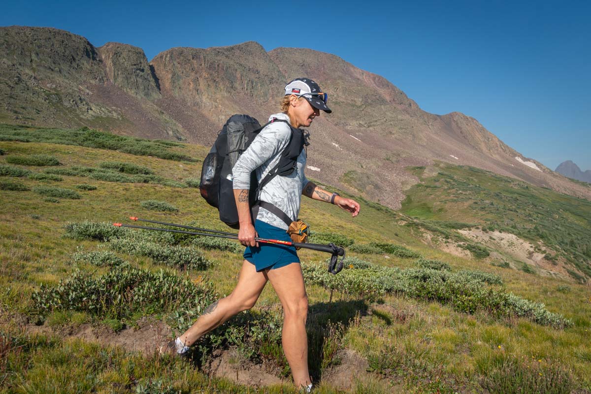 iRunFar’s Meghan Hicks carries three day’s worth of food and gear in an older Gossamer Gear Kumo 36 Superlight Backpack. Photo: iRunFar/Eszter Horanyi