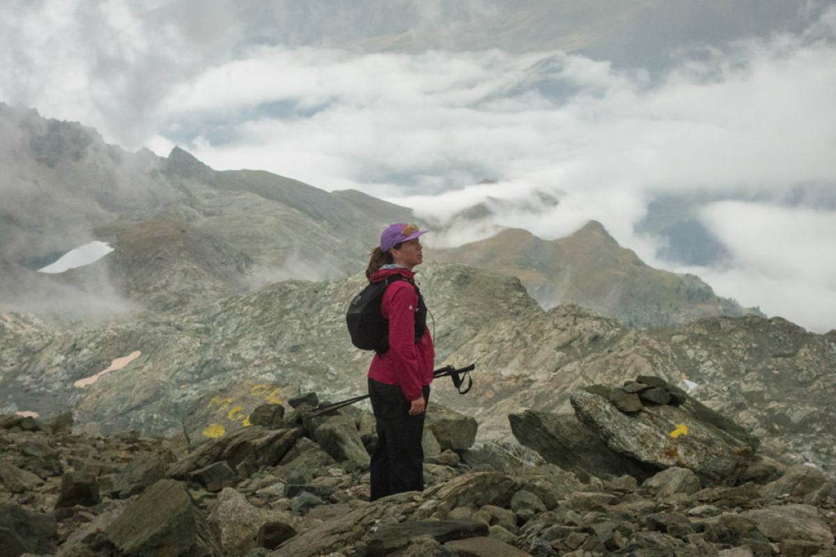 A rain jacket like the Montbell Rain Trekker Jacket can also provide wind protection on cold peaks. Photo: iRunFar/Eszter Horanyi