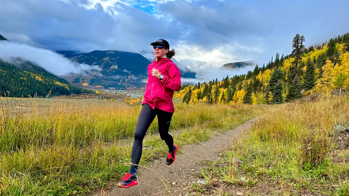 Meghan Hicks of iRunFar testing trail shoes high in Colorado’s San Juan Mountains.