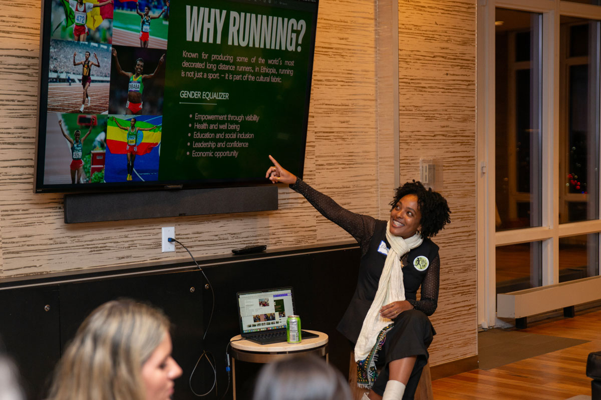 Blaine Kebede presenting on the Girls Gotta Run Foundation. All photos courtesy of Blaine Kebede unless otherwise noted.