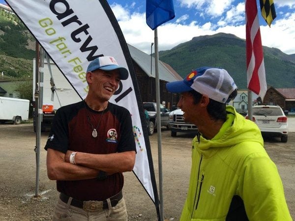 Post-race chat with Kilian. Photo: iRunFar/Bryon Powell