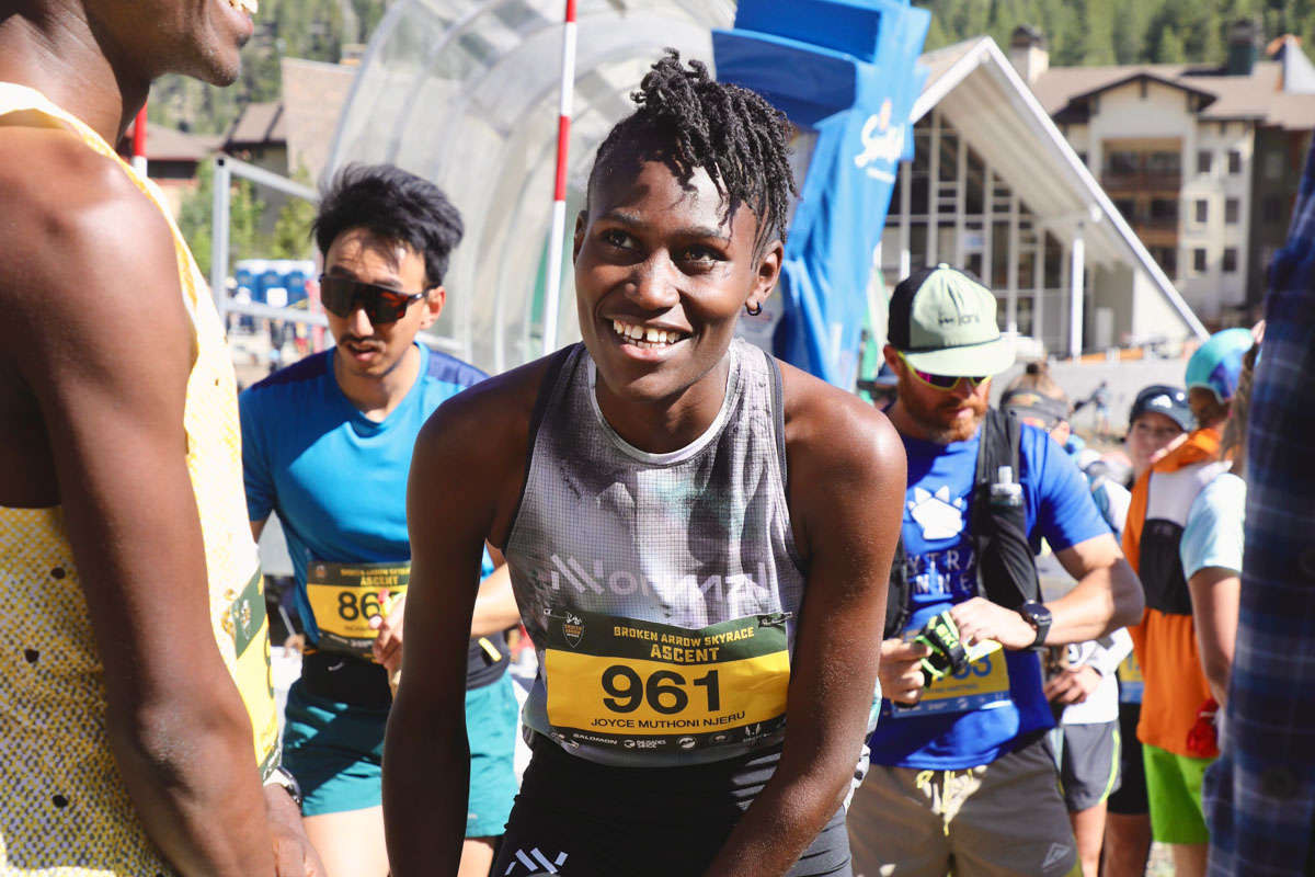 Joyce Njeru at the start of the 2025 Broken Arrow Skyrace Ascent. She would go on to take second place. Photo: iRunFar/Meghan Hicks