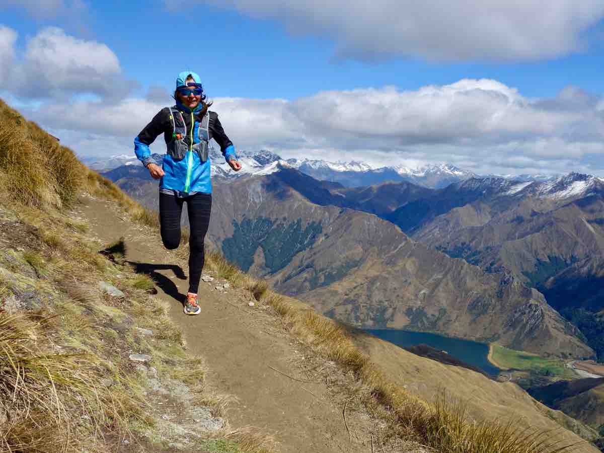 Magda Boulet demonstrating healthy knee mechanics while descending Ben Lomond in New Zealand. Photo: iRunFar/Meghan Hicks