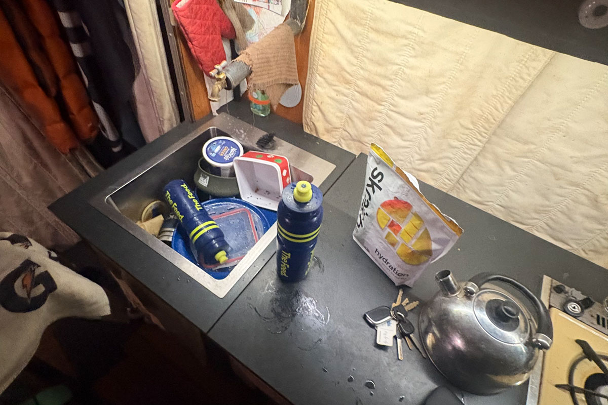 I’ll remember sitting on my bike trainer in a heat suit, squeezed into my 60-square-foot short bus alongside a table, bed, kitchen, and bathroom, with the heat blasting, being able to pedal full revolutions without banging my knees into anything, grab nutrition from the kitchen counter, and refill water bottles from the sink without ever getting off my bike.